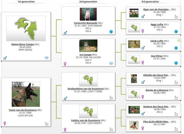 La sua riproduzione (è stato usato tantissimo, tra cui anche dal suo allevatore e ora in consanguinità) è di alta qualità sia per ipo che soprattutto per mondioring e ring belga.