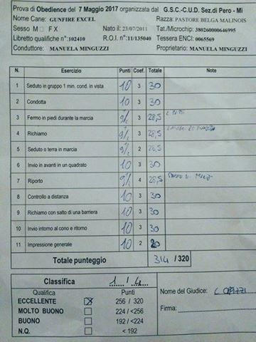 Intanto alla prima obedience1 con tantissimi complimenti da parte del giudice Excel e Manuela hanno preso questa "pagellina"