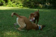 Con  i miei sinceramente non ho mai avuto problemi. Hanno un linguaggio  chiarissimo, si sanno rapportare molto bene, forse l'unico difetto è che  quando corrono tendono ad essere un po' dei "trattori" e arrivando a  velocità supersoniche possono far paura a cani (e persone) che non sono  così sicuri di essere scansati, cosa che invece puntualmente accade. Per  il resto sanno giocare, sanno stare tranquilli, i miei accettano cani  in casa, sia di amici che "new entry".